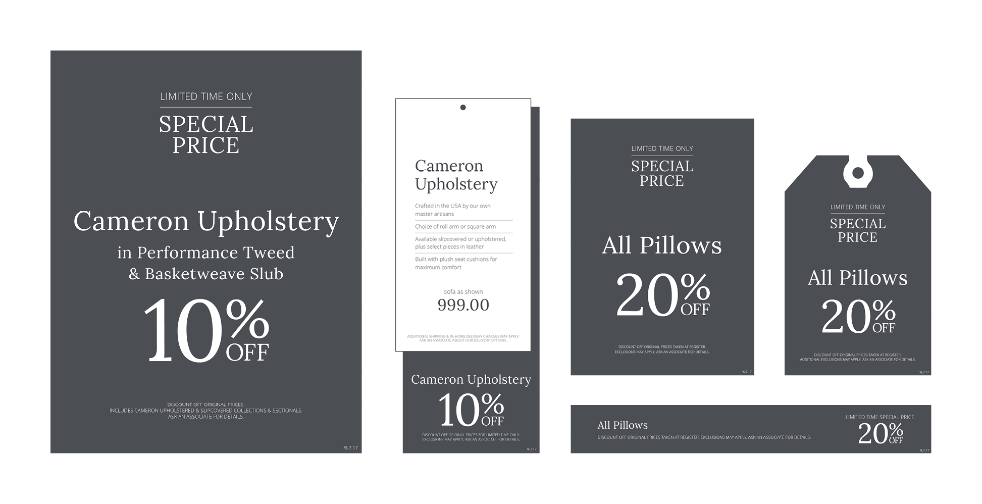 As one of the main customer-facing sales tools in stores, our signage markets grand openings, various store events, and guest collaborations to promote Pottery Barn's brand.
